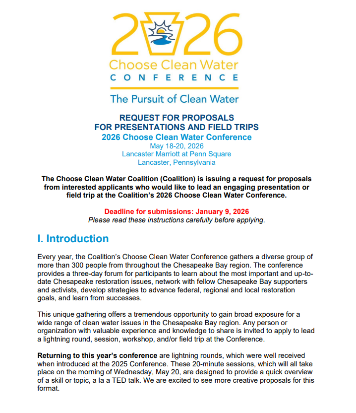 We are now accepting proposals to present at the 2026 Choose Clean Water Conference.